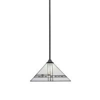 Toltec Lighting 13-Mb-955 Chain/Square Stem Hung Pendant With 14" New Deco Tiffany Glass, Matte Black