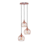 Toltec Lighting 1818-Cp-1802-At14 Plexus 3 Light Multi-Light Mini Pendant With Smoke Antique Bulbs, Copper