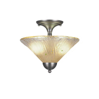 The Toltech Lighting 120-BN-700 Two-Bulb Semi-Flush Mount Brushed Nickel Finish with Amber Crystal Glass Shade, 12-Inch is a ceiling light that features a 12-Inch amber crystal glass shade. . Product dimensions (in Inch): 11.25 H by 12 W. Fixture requires 2 60-Watt medium base incandescent bulbs, not included. Product safety tested and approved by the UL/CUL in the US and Canada. Assembly required. This model is also available in the following finishes: Bronze.