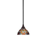 Toltec Lighting 23-Bc-9955 Stem Mini Pendant With Hang Straight Swivel With 7" Blue Mosaic Tiffany Glass, Black Copper Finish