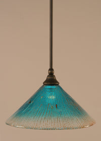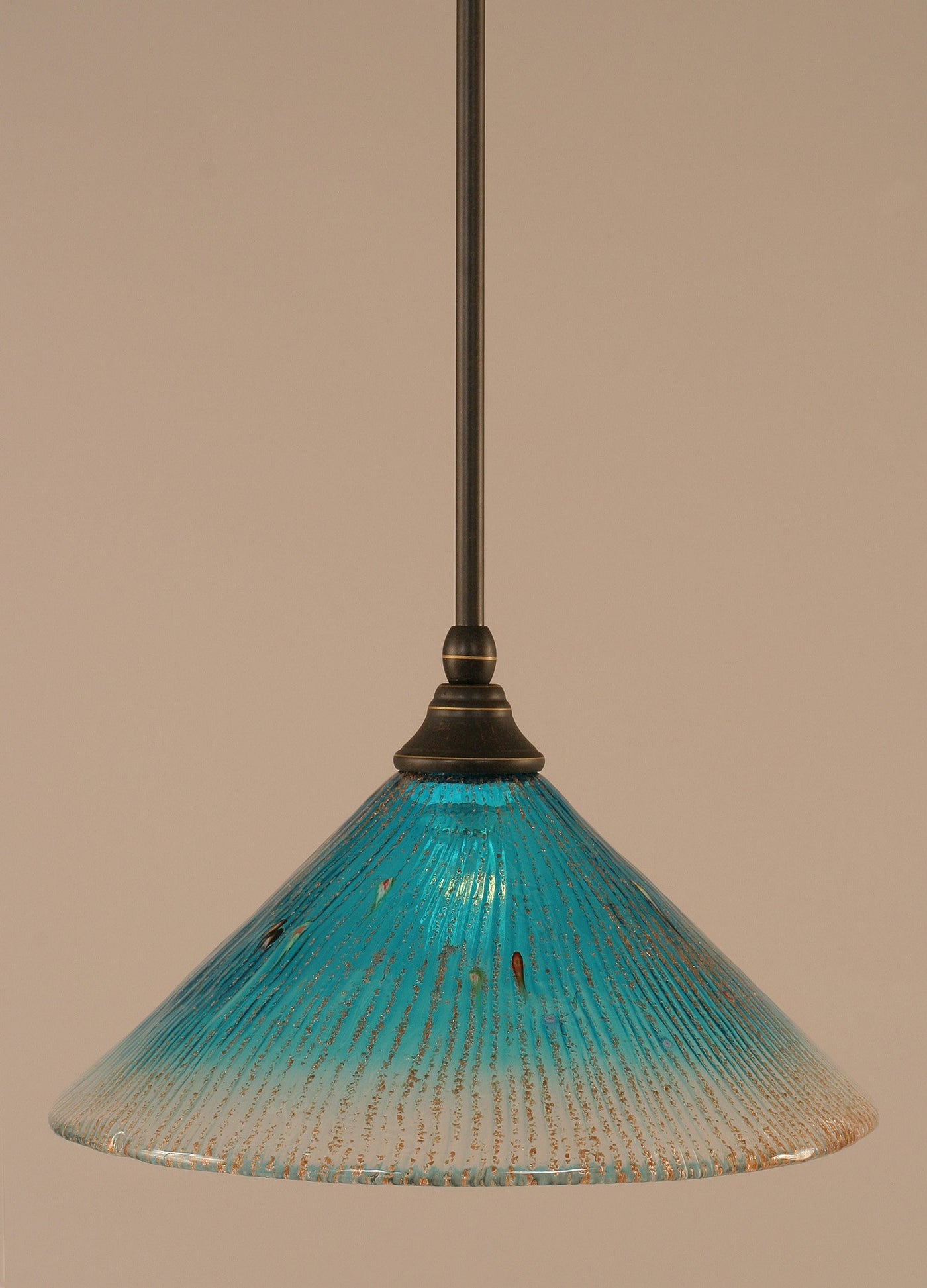 Toltec Lighting 23-Dg-448 Stem Mini Pendant With Hang Straight Swivel With 12" Teal Crystal Glass, Dark Granite Finish