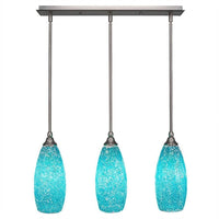 Toltec Lighting 25-Bn-5065 3 Light Multi-Light Mini Hang Straight Swivel Pendant With Turquoise Fusion Glass, 5.5", Brushed Nickel