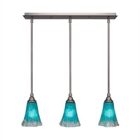 Toltec Lighting 25-Bn-725 3 Light Multi-Light Mini Hang Straight Swivel Pendant With Fluted Teal Crystal Glass, 5.5", Brushed Nickel