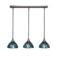 This listing is for the Toltec 3 light multi light mini pendant with hang straight swivels in brushed nickel finish with 7-inch blue mosaic glass. Founded in the 1975, Toltec Lighting is a family owned and operated company dedicated to creating quality and competitively priced lighting fixtures for your home. Toltec is famous for quality and value. We take pride in having taken the lead in the field of design. We are continually introducing new concepts and ideas while maintaining a close eye on tradition.