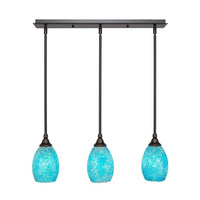 Toltec Lighting 25-Dg-5055 3 Light Multi-Light Mini Hang Straight Swivel Pendant With Turquoise Fusion Glass, 5", Dark Granite