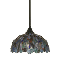 Toltec Lighting 26-Mb-995 Stem Pendant With Hang Straight Swivel With 16" Blue Mosaic Tiffany Glass, Matte Black Finish