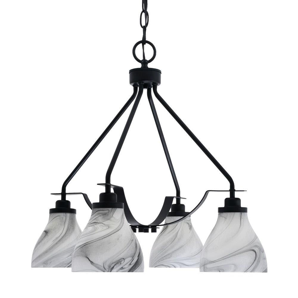 Collection: Odyssey, Material: Glass, Finish Color: Matte Black, Width: 18", Height: 22.25", Chain Length: 120", Lamping Type: Incandescent, Number Of Bulbs: 3, Wattage: 100 Watts, Dimmable: Yes, Moisture Rating: Dry Rated, Desc: Odyssey Downlight, 4 Light, Chandelier In Matte Black Finish With 6.25" Clear Bubble Glass,