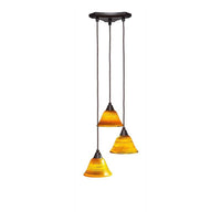 Toltec Lighting 28-Dg-454 Europa 3 Light Multi-Light Mini Pendant With Firré Saturn Glass, 7", Dark Granite