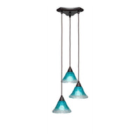 Toltec Lighting 28-Dg-458 Europa 3 Light Multi-Light Mini Pendant With Teal Crystal Glass, 7", Dark Granite