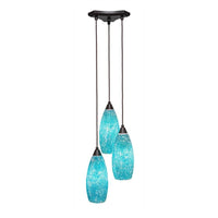 Toltec Lighting 28-Dg-5065 Europa 3 Light Multi-Light Mini Pendant With Turquoise Fusion Glass, 5.5", Dark Granite