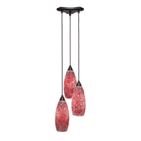 Toltec Lighting 28-Dg-5066 Europa 3 Light Multi-Light Mini Pendant With Red Fusion Glass, 5.5", Dark Granite