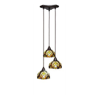 Toltec Lighting 28-Dg-9945 Europa 3 Light Multi-Light Mini Pendant With Ivory Cypress Glass, 7", Dark Granite