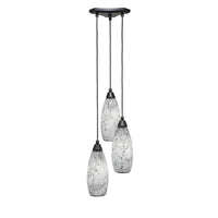 Toltec Lighting 28-Mb-416 Europa 3 Light Multi-Light Mini Pendant With Black Fusion Glass, 5.5", Matte Black