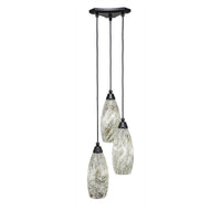 Toltec Lighting 28-Mb-5064 Europa 3 Light Multi-Light Mini Pendant With Natural Fusion Glass, 5.5", Matte Black
