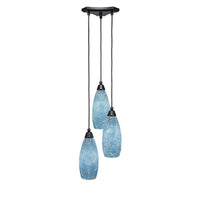 Toltec Lighting 28-Mb-5065 Europa 3 Light Multi-Light Mini Pendant With Turquoise Fusion Glass, 5.5", Matte Black