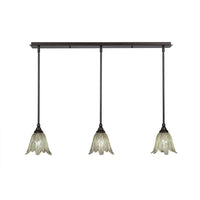 36-BRZ-1025 3 Light Linear Pendalier With Hang Straight Swivels Shown In Bronze Finish With 7" Vanilla Leaf Glass. Rated for: Dry location. Light Bulb Data: 3 Medium 100 watt. Bulb included: No.
