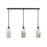 36-BRZ-5064 3 Light Linear Pendalier With Hang Straight Swivels Shown In Bronze Finish With 5.5" Natural Fusion Glass. Rated for: Dry location. Light Bulb Data: 3 Medium 100 watt. Bulb included: No.