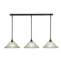 36-BRZ-523 3 Light Linear Pendalier With Hang Straight Swivels Shown In Bronze Finish With 12" Amber Marble Glass. Rated for: Dry location. Light Bulb Data: 3 Medium 100 watt. Bulb included: No.