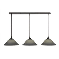 36-BRZ-604 3 Light Linear Pendalier With Hang Straight Swivels Shown In Bronze Finish With 12" Gray Linen Glass. Rated for: Dry location. Light Bulb Data: 3 Medium 100 watt. Bulb included: No.