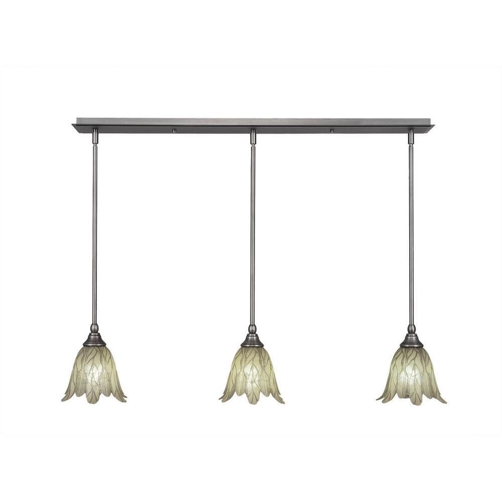 36-BN-1025 3 Light Linear Pendalier With Hang Straight Swivels Shown In Brushed Nickel Finish With 7" Vanilla Leaf Glass. Rated for: Dry location. Light Bulb Data: 3 Medium 100 watt. Bulb included: No.