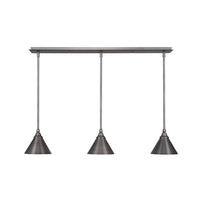 Toltec Lighting 36-BN-421 3 Light Linear Pendalier With Hang Straight Swivels Shown In Brushed Nickel Finish With 7" Brushed Nickel Cone Metal Shade. Rated for: Dry location. Light Bulb Data: 3 Medium 100 watt. Bulb included: No.
