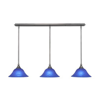 36-BN-435 3 Light Linear Pendalier With Hang Straight Swivels Shown In Brushed Nickel Finish With 10" Blue Italian Glass. Rated for: Dry location. Light Bulb Data: 3 Medium 100 watt. Bulb included: No.