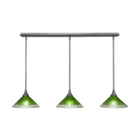 36-BN-437 3 Light Linear Pendalier With Hang Straight Swivels Shown In Brushed Nickel Finish With 10" Kiwi Green Crystal Glass. Rated for: Dry location. Light Bulb Data: 3 Medium 100 watt. Bulb included: No.