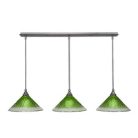 36-BN-447 3 Light Linear Pendalier With Hang Straight Swivels Shown In Brushed Nickel Finish With 12" Kiwi Green Crystal Glass. Rated for: Dry location. Light Bulb Data: 3 Medium 100 watt. Bulb included: No.