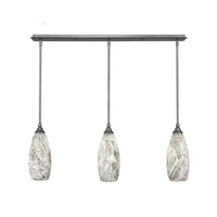 36-BN-5064 3 Light Linear Pendalier With Hang Straight Swivels Shown In Brushed Nickel Finish With 5.5" Natural Fusion Glass. Rated for: Dry location. Light Bulb Data: 3 Medium 100 watt. Bulb included: No.