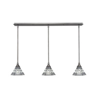36-BN-9105 3 Light Linear Pendalier With Hang Straight Swivels Shown In Brushed Nickel Finish With 7" Pewter Art Glass. Rated for: Dry location. Light Bulb Data: 3 Medium 100 watt. Bulb included: No.