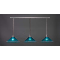 48-BN-715 3 Light Linear Pendalier With Hang Straight Swivels Shown In Brushed Nickel Finish With 16" Teal Crystal Glass. Rated for: Dry location. Light Bulb Data: 3 Medium 150 watt. Bulb included: No.
