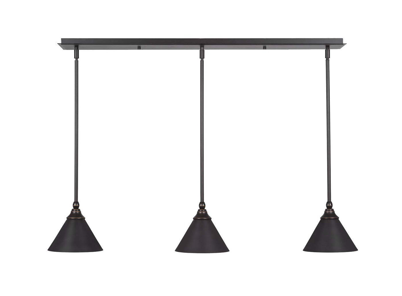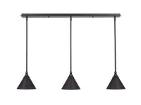 36-DG-421 3 Light Linear Pendalier With Hang Straight Swivels Shown In Dark Granite Finish With 7" Dark Granite Cone Metal Shade. Rated for: Dry location. Light Bulb Data: 3 Medium 100 watt. Bulb included: No.