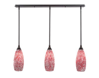 36-DG-5066 3 Light Linear Pendalier With Hang Straight Swivels Shown In Dark Granite Finish With 5.5" Red Fusion Glass. Rated for: Dry location. Light Bulb Data: 3 Medium 100 watt. Bulb included: No.