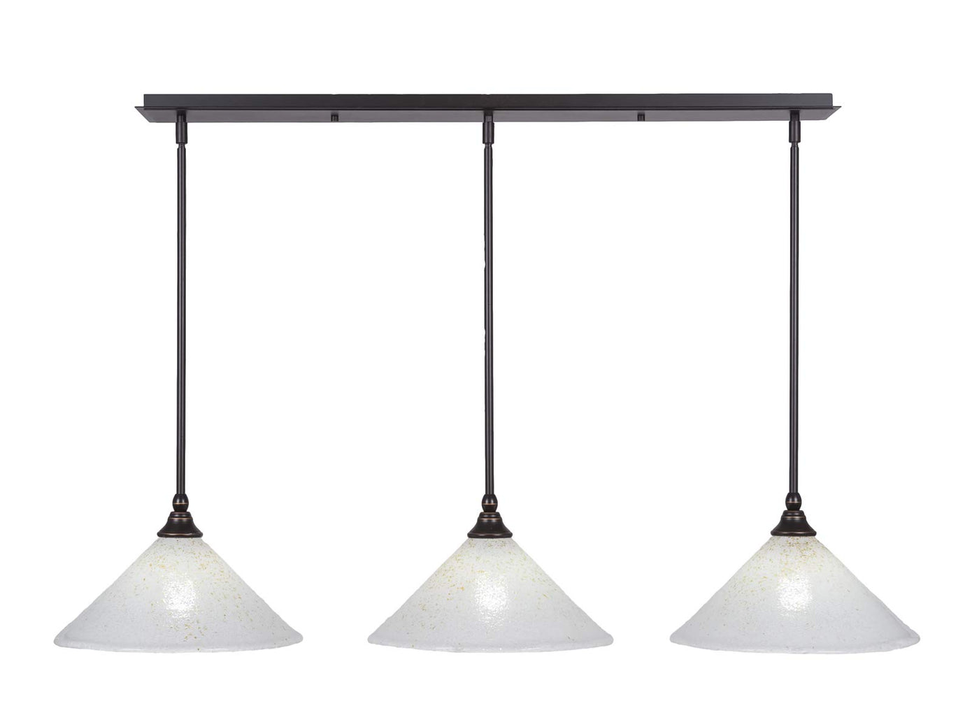 36-DG-702 3 Light Linear Pendalier With Hang Straight Swivels Shown In Dark Granite Finish With 12" Gold Ice Glass. Rated for: Dry location. Light Bulb Data: 3 Medium 100 watt. Bulb included: No.