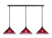 36-DG-706 3 Light Linear Pendalier With Hang Straight Swivels Shown In Dark Granite Finish With 12" Raspberry Crystal Glass. Rated for: Dry location. Light Bulb Data: 3 Medium 100 watt. Bulb included: No.
