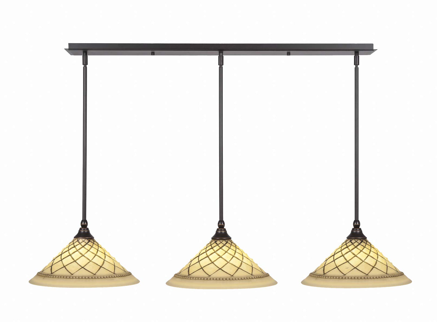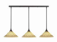 36-DG-7182 3 Light Linear Pendalier With Hang Straight Swivels Shown In Dark Granite Finish With 12" Chocolate Icing Glass. Rated for: Dry location. Light Bulb Data: 3 Medium 100 watt. Bulb included: No.
