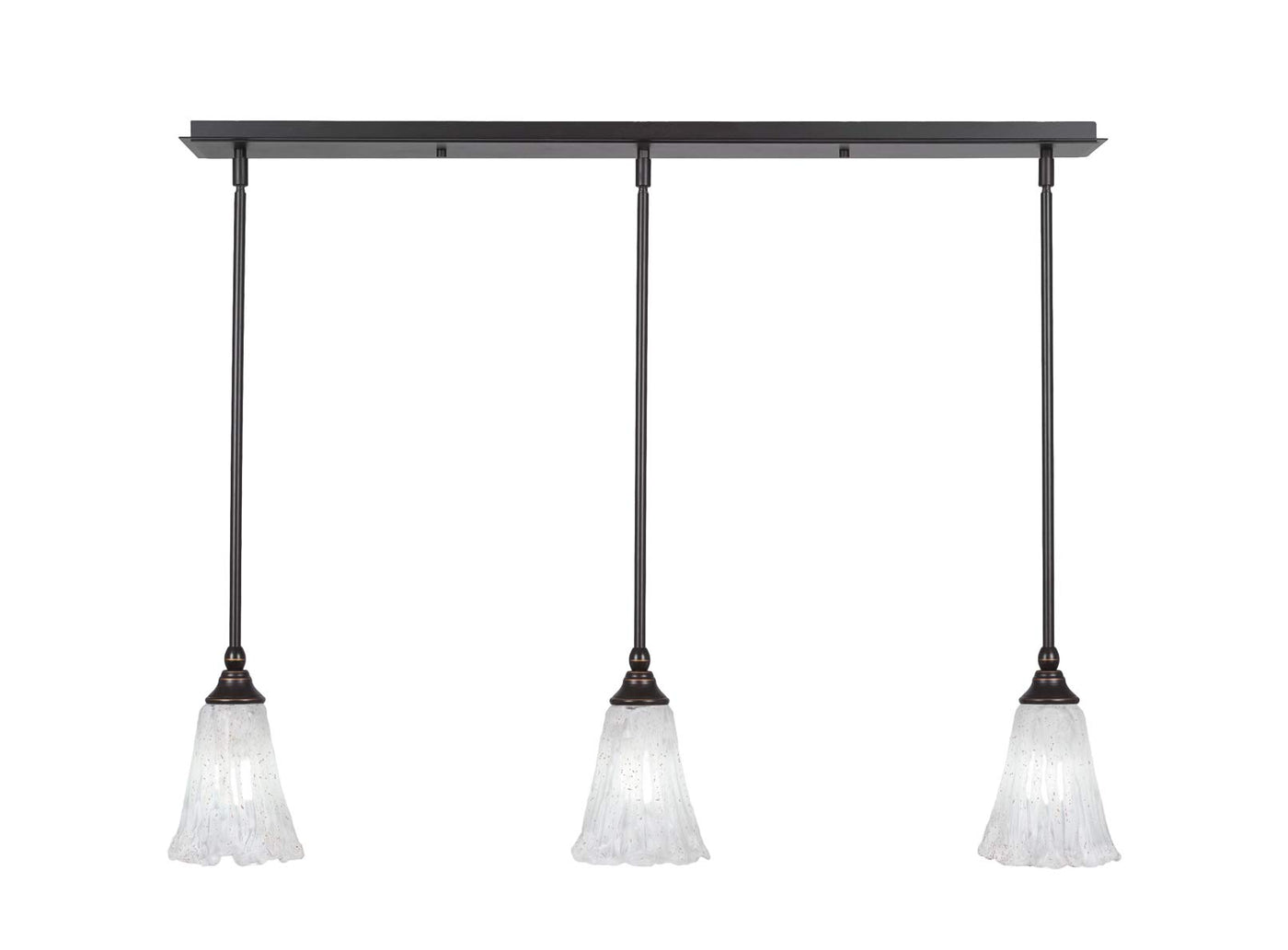 36-DG-729 3 Light Linear Pendalier With Hang Straight Swivels Shown In Dark Granite Finish With 5.5" Italian Ice Glass. Rated for: Dry location. Light Bulb Data: 3 Medium 100 watt. Bulb included: No.