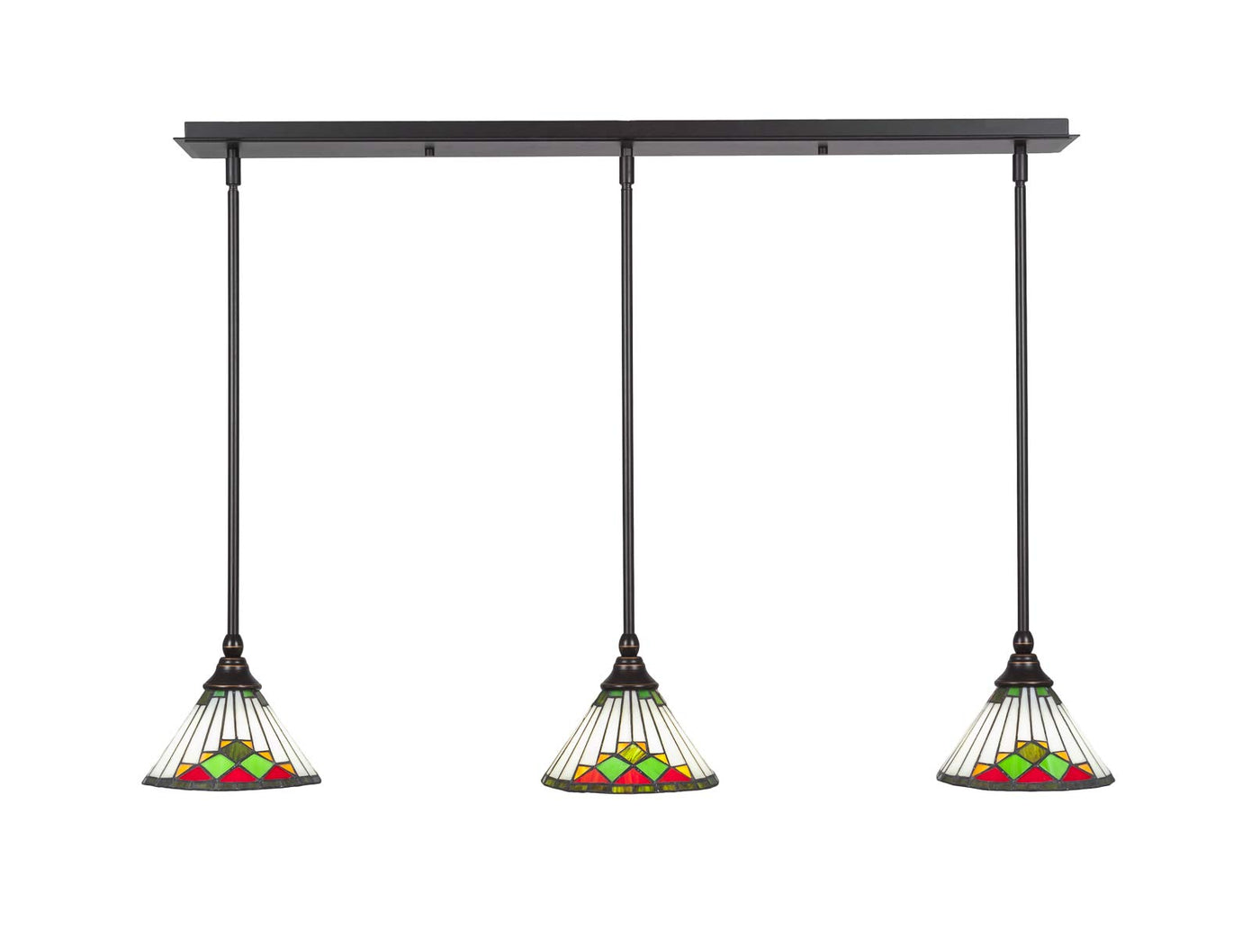 36-DG-9375 3 Light Linear Pendalier With Hang Straight Swivels Shown In Dark Granite Finish With 7" Green Sunray Art Glass. Rated for: Dry location. Light Bulb Data: 3 Medium 100 watt. Bulb included: No.