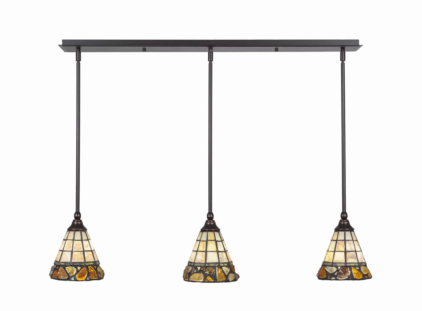 36-DG-9735 3 Light Linear Pendalier With Hang Straight Swivels Shown In Dark Granite Finish With 7" Cobblestone Art Glass. Rated for: Dry location. Light Bulb Data: 3 Medium 100 watt. Bulb included: No.