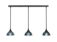 36-DG-9955 3 Light Linear Pendalier With Hang Straight Swivels Shown In Dark Granite Finish With 7" Blue Mosaic Art Glass. Rated for: Dry location. Light Bulb Data: 3 Medium 100 watt. Bulb included: No.
