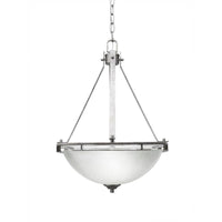 The Uptown pendant with 3 bulbs in aged silver finish with 13.5-Inch white muslin glass is UL/CUL listed. Comes with 10 ft. Of chain and 11 ft. Of wire. Product dimensions: 15.25-Inches deep x 15.25-Inches long x 15.25-Inches wide x 22.5-Inches tall. Chain hung. Requires 3 60-Watt medium incandescent bulbs. The beauty of Toltec Lighting's entire product line is the opportunity to create a look all your own. Toltec Lighting now offers over 40 glass shade choices, with most being available as an option on every lighting family, making the variations limitless. It really doesn't matter if a project requires traditional, transitional, or contemporary styling, Toltec Lighting fixtures will fit most any decor.