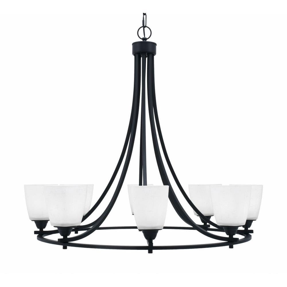 Collection: Paramount, Material: Steel, Finish Color: Matte Black, Width: 33.5", Height: 31", Chain Length: 120", Lamping Type: Incandescent, Number Of Bulbs: 8, Wattage: 60 Watts, Dimmable: Yes, Moisture Rating: Dry Rated, Desc: Paramount Uplight, 8 Light, Chandelier In Brushed Nickel Finish With 4.5" White Muslin Glass,