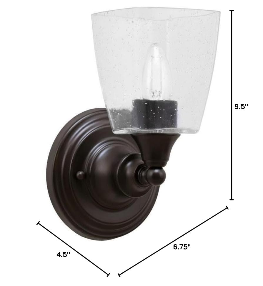 The wall sconce in espresso finish with 4.5-Inch clear bubble glass is UL/CUL listed. Product dimensions: 6.75-Inches deep x 4.5-Inches wide x 9.5-Inches tall. Includes 1 100-watt medium incandescent Bulb. The beauty of Toltec Lighting's entire product line is the opportunity to create a look all your own. Toltec Lighting now offers over 40 glass shade choices, with most being available as an option on every lighting family, making the variations limitless. It really doesn't matter if a project requires traditional, transitional, or contemporary styling, Toltec Lighting fixtures will fit most any decor.