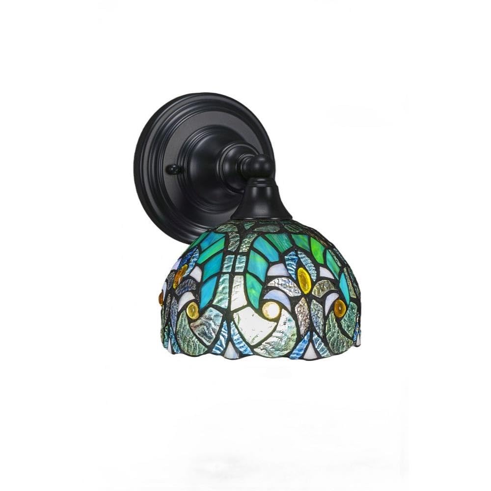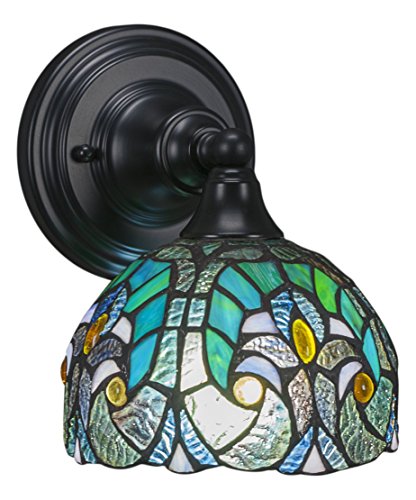 Toltec Lighting 40-Mb-9925 Wall Sconce With 7" Turquoise Cypress Tiffany Glass, Matte Black Finish
