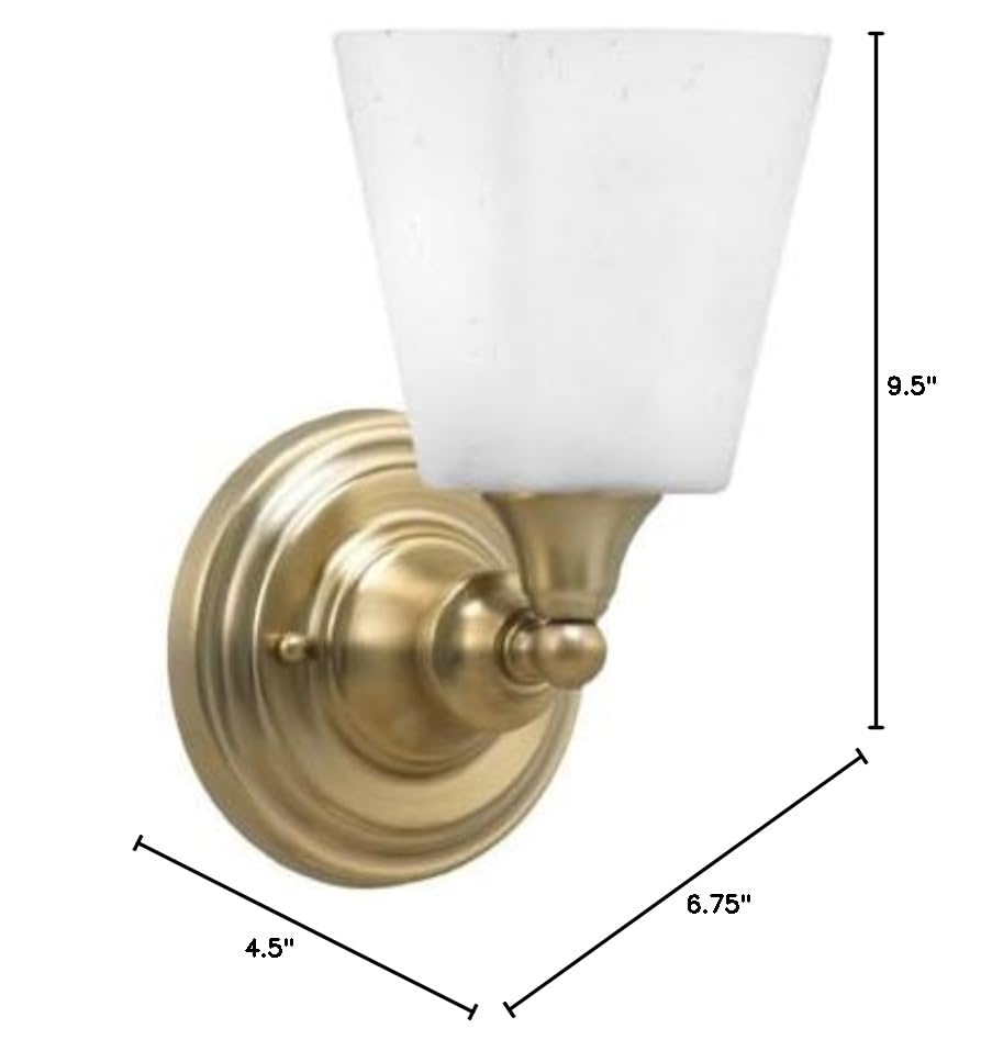 The wall sconce in new age brass finish with 4.5-Inch white bubble glass is UL/CUL listed. Product dimensions: 6.75-Inches deep x 4.5-Inches wide x 9.5-Inches tall. Includes 1 100-watt medium incandescent Bulb. The beauty of Toltec Lighting's entire product line is the opportunity to create a look all your own. Toltec Lighting now offers over 40 glass shade choices, with most being available as an option on every lighting family, making the variations limitless. It really doesn't matter if a project requires traditional, transitional, or contemporary styling, Toltec Lighting fixtures will fit most any decor.