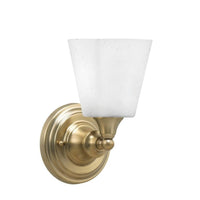 Q: What is the finish of the Toltec Lighting 40-NAB-460 Wall Sconce?A: The wall sconce features a new age brass finish that enhances its aesthetic appeal and complements the 4.5-inch white bubble glass.