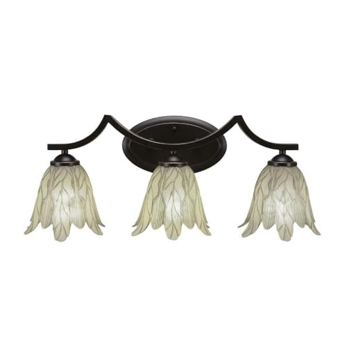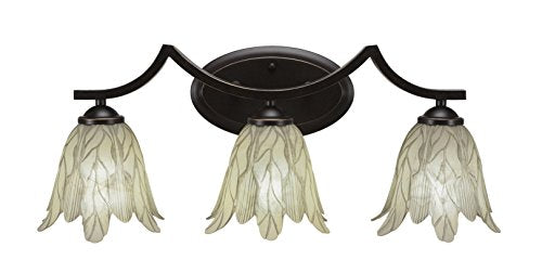 Toltec Lighting 553-Dg-1025 Zilo 3 Light Bath Bar With 7" Vanilla Leaf Glass