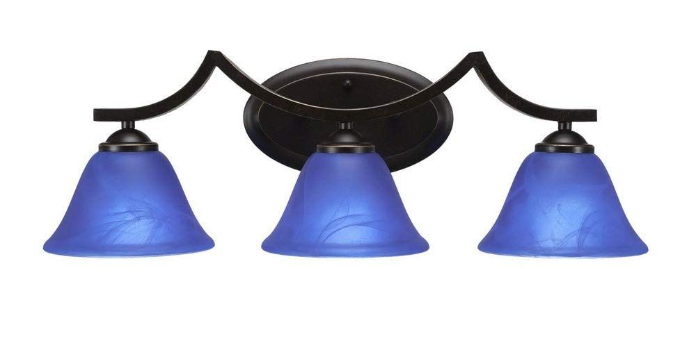 The Zilo 3 Light Bath Bar in Dark Granite Finish with 7-Inch Blue Italian Glass is UL/CUL Listed. Product Dimensions: 8.5-inches deep x 23.75-inches long x 8.25-inches tall. Requires 3 100-Watt medium incandescent bulbs. The beauty of Toltec Lighting's entire product line is the opportunity to create a look all your own. Toltec Lighting now offers over 40 glass shade choices, with most being available as an option on every lighting family, making the variations limitless. It really doesn't matter if a project requires Traditional, Transitional, or Contemporary styling, Toltec Lighting fixtures will fit most any decor.