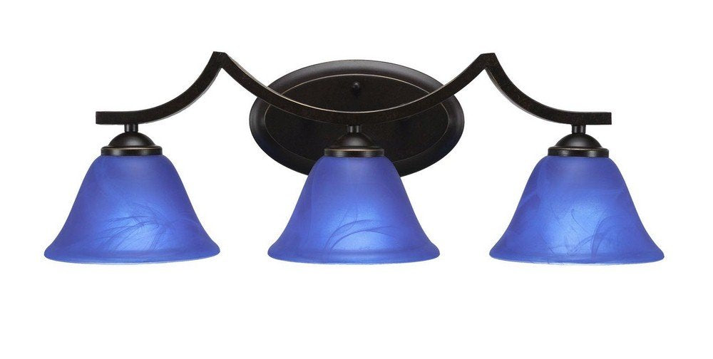 Toltec Lighting 553-Dg-4155 Zilo 3 Light Bath Bar With 7" Blue Italian Glass