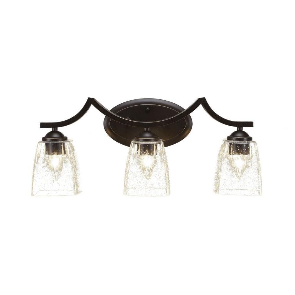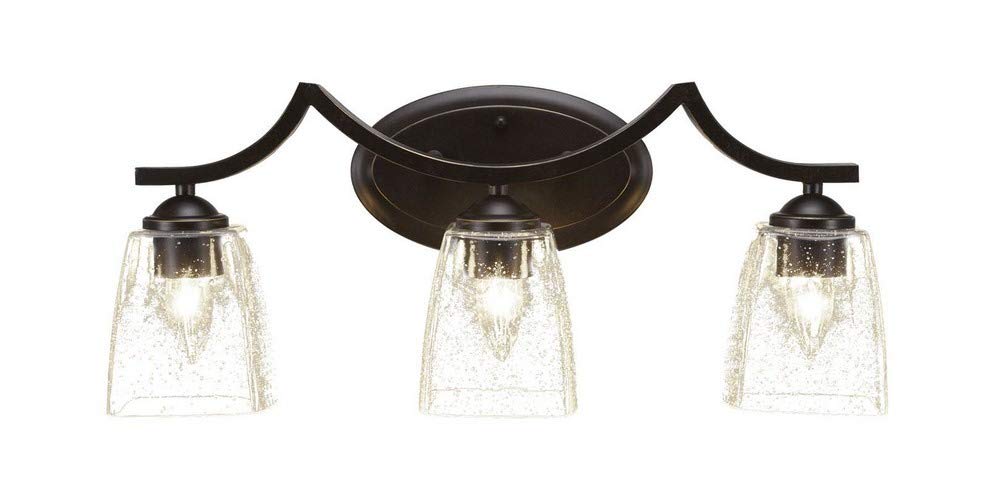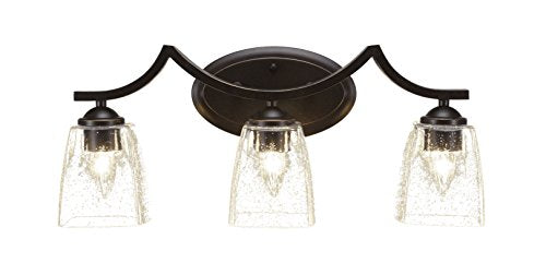 The Zilo 3 Light Bath Bar in Dark Granite Finish with 4.5-Inch Clear Bubble Glass is UL/CUL Listed. Product Dimensions: 7.25-inches deep x 21.25-inches long x 9.5-inches tall. Requires 3 100-Watt medium incandescent bulbs. The beauty of Toltec Lighting's entire product line is the opportunity to create a look all your own. Toltec Lighting now offers over 40 glass shade choices, with most being available as an option on every lighting family, making the variations limitless. It really doesn't matter if a project requires Traditional, Transitional, or Contemporary styling, Toltec Lighting fixtures will fit most any decor.